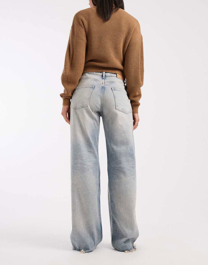 Mia Distressed Mid Rise Relaxed Straight Leg Jeans In Light Wash