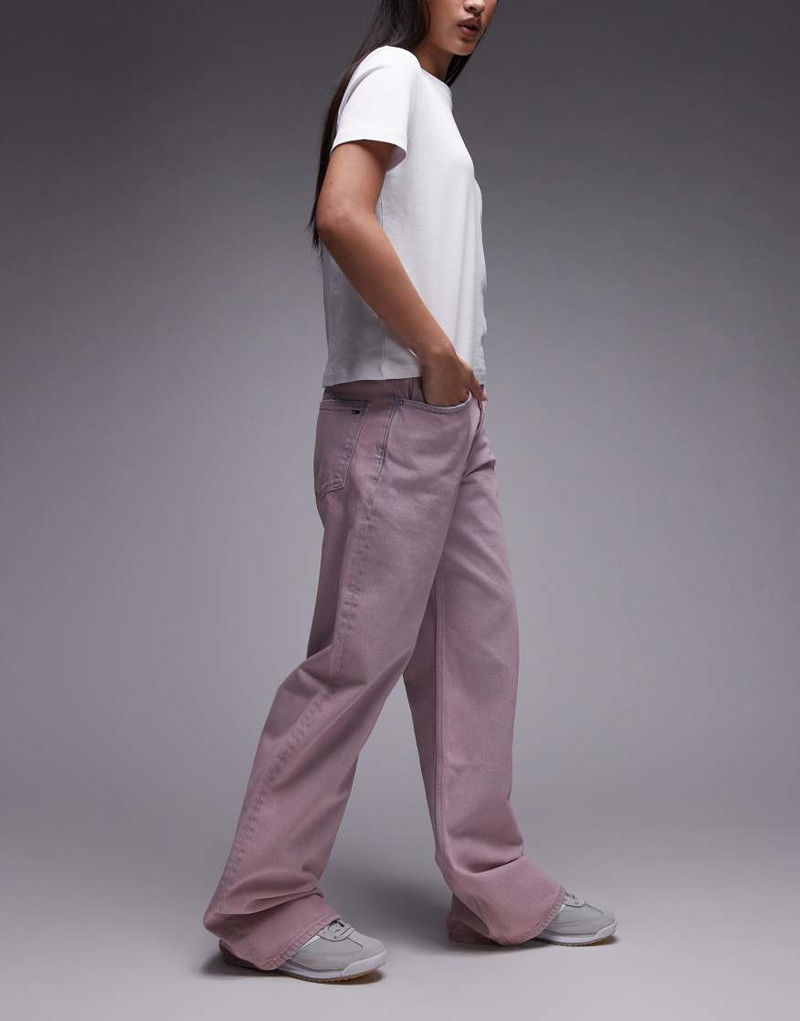 Mia Mid Rise Relaxed Straight Leg Jeans In Pink Denim