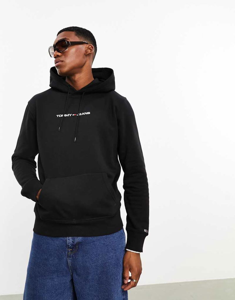 Regular Linear Logo Hoodie In Black