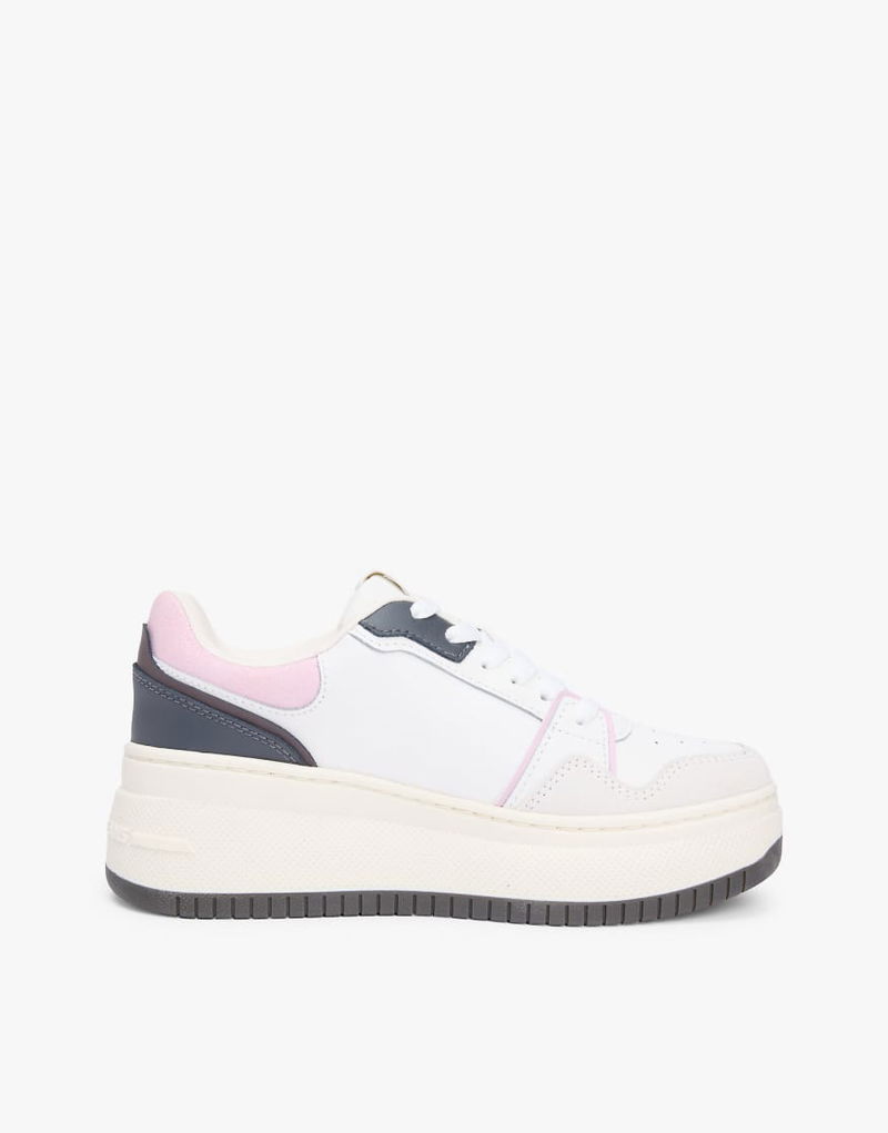 Retro Platform Basketball Trainers With Leather In Multi