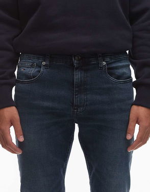 Regular rise Belt loops Five pockets Branded patch to reverse Regular fit.