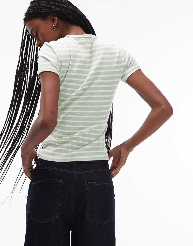 Short Sleeve Slim Fit Rib Logo T-shirt In Green Stripe