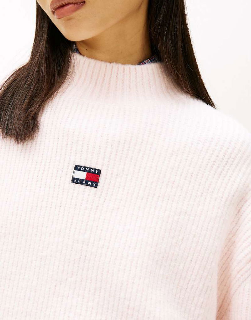 Tommy Badge Relaxed Mock Neck Jumper In Light Pink