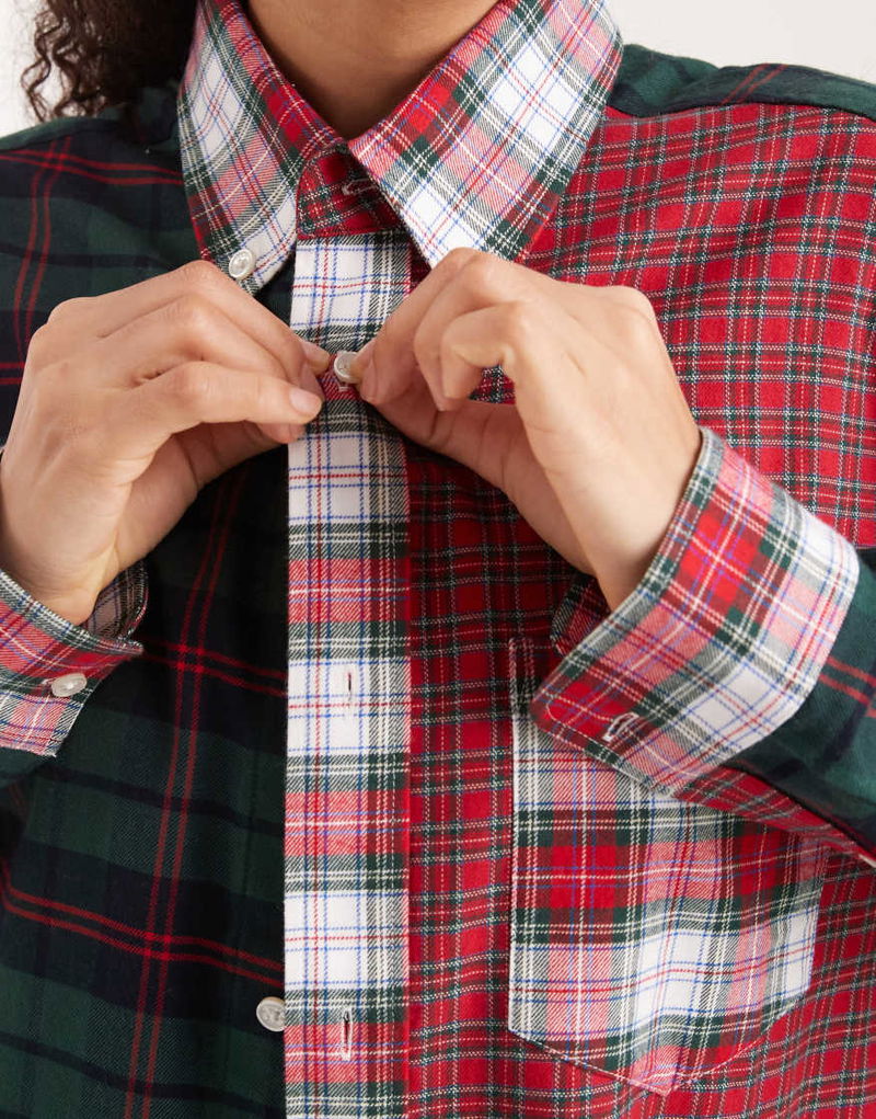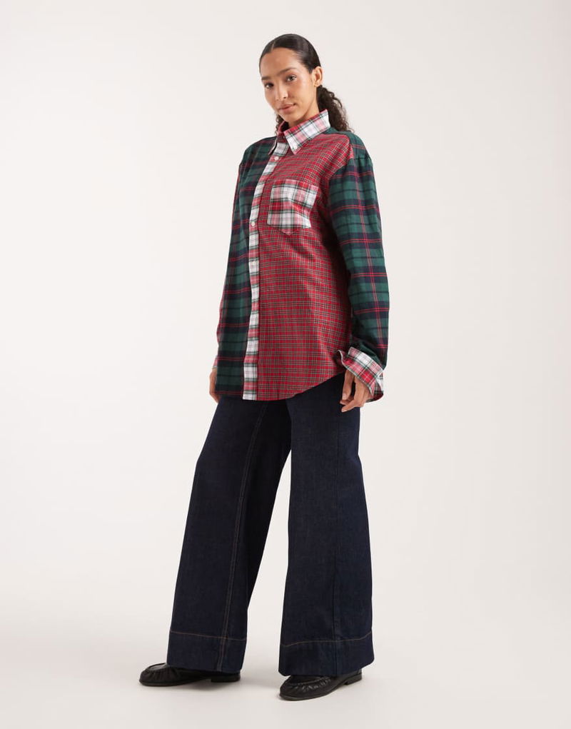 Tommy Girl Tartan Patchwork Shirt In Red And Green
