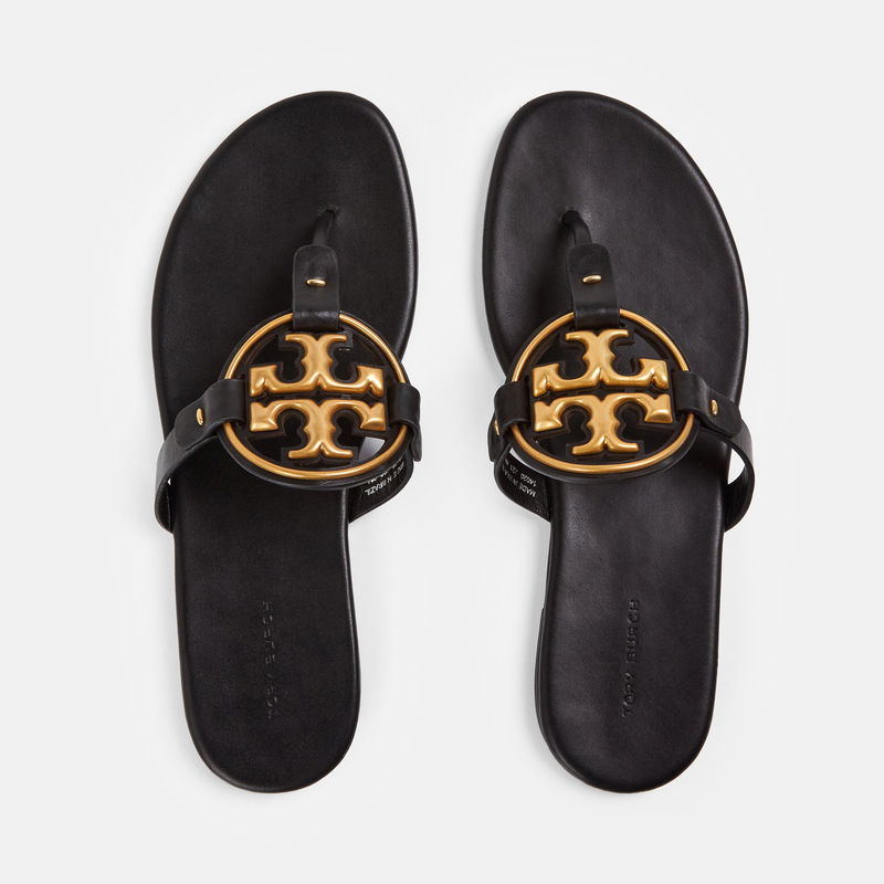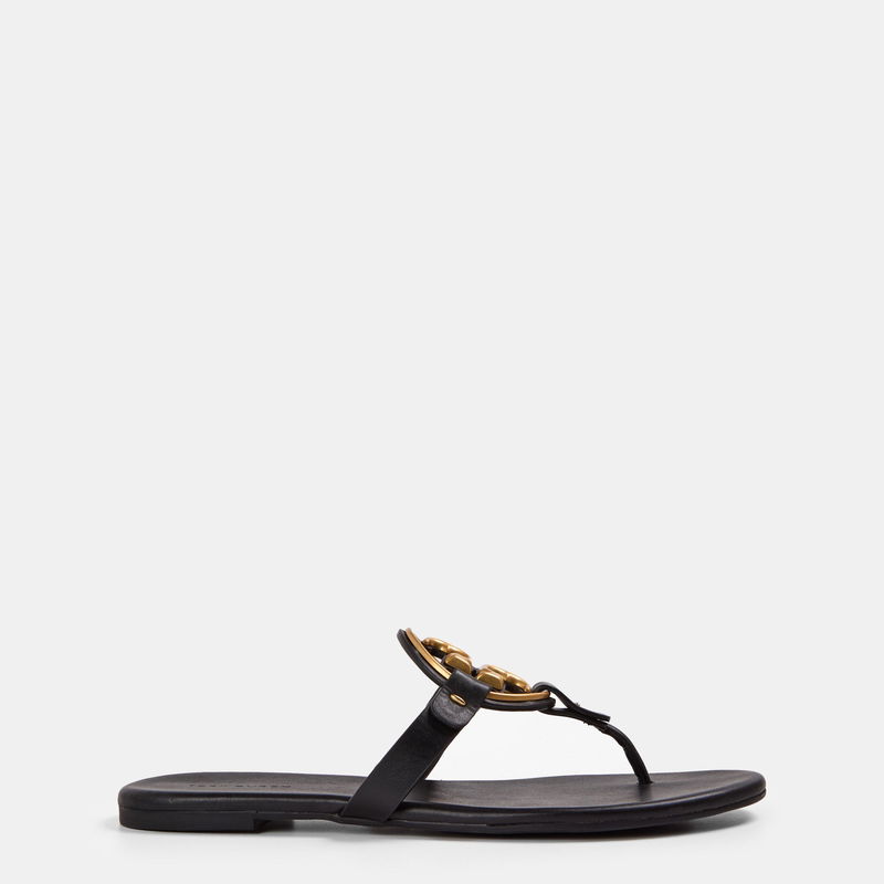 F-Mode Leather Flatform Back-Strap Toe-Post Sandals