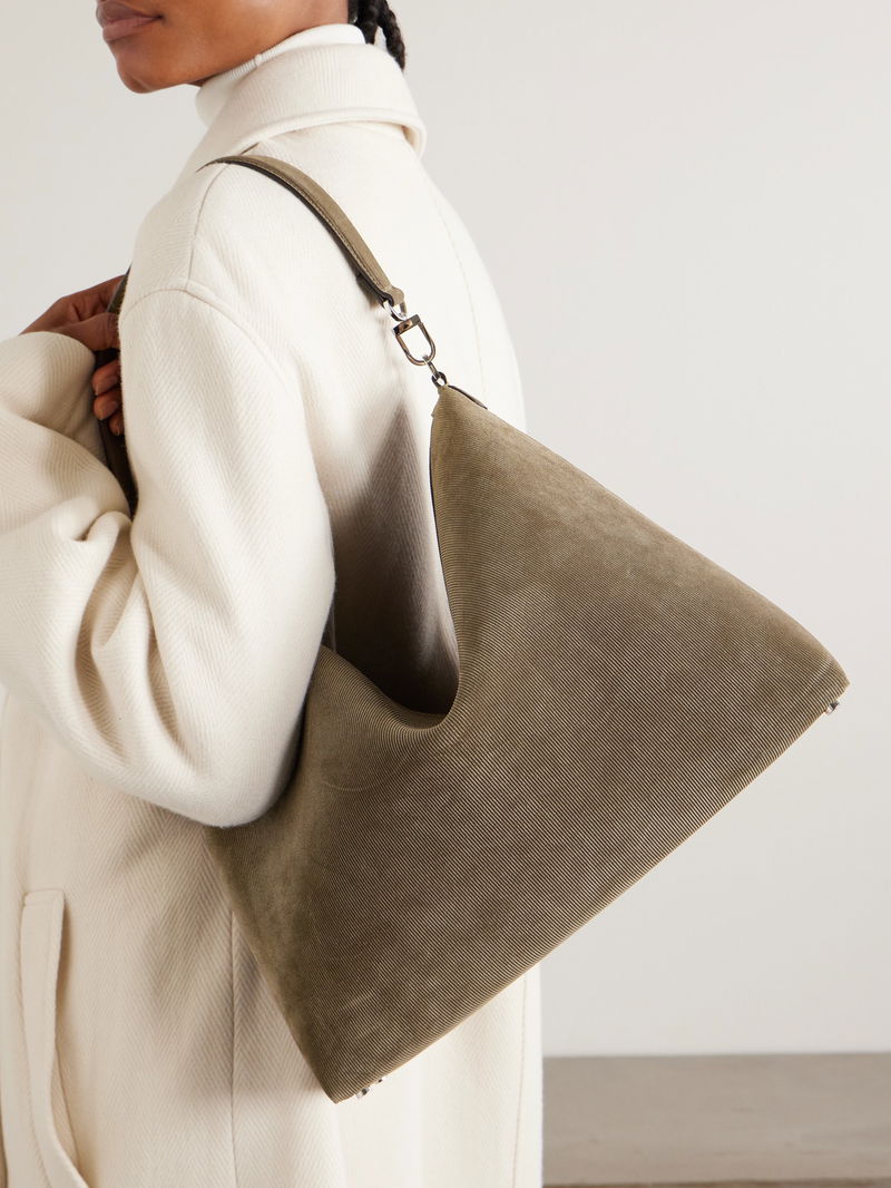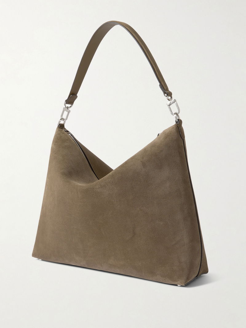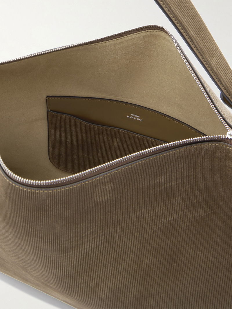 TOTEME's 'Bevel' bags illustrate the label's skill with shape. Made from suede that's textured to resemble corduroy, this medium version has a slender strap that can be easily removed via the clip hardware.
