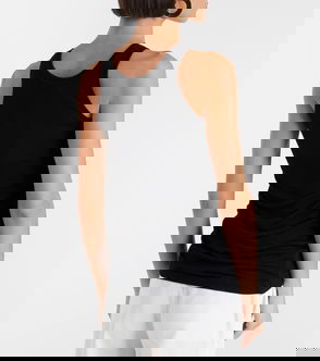 GRS-certified recycled polyester crepe top. Darts and pinched seams throughout.