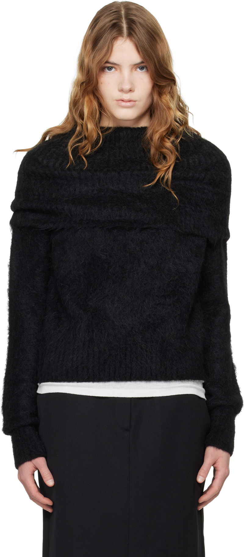 Stretch brushed knit alpaca-blend turtleneck.