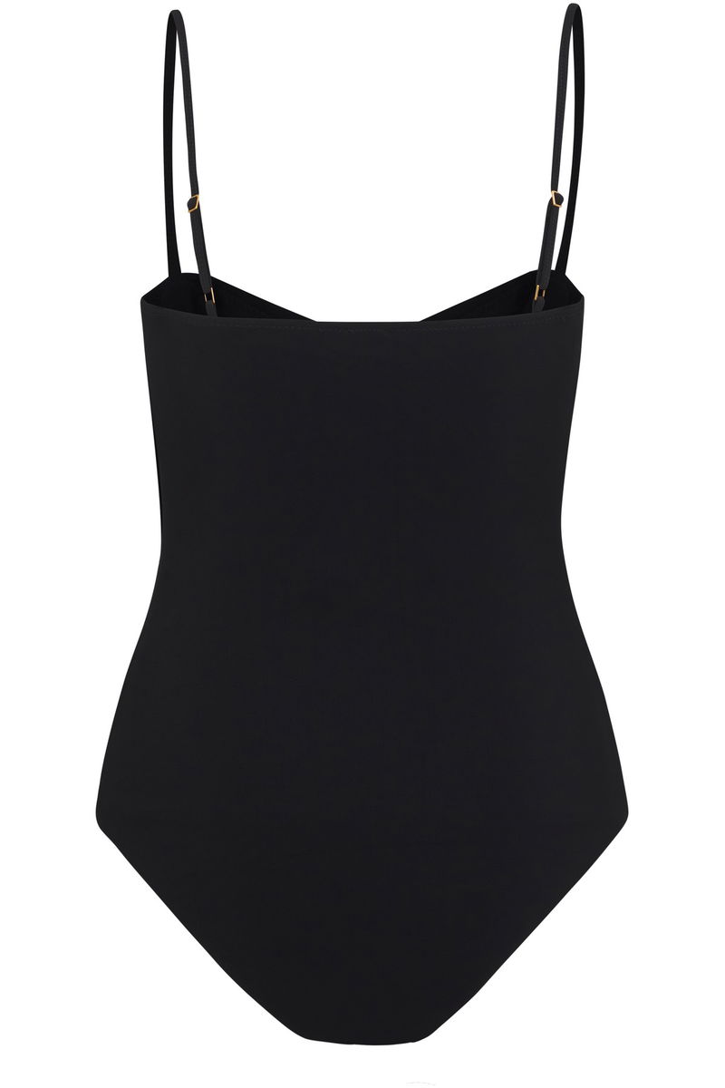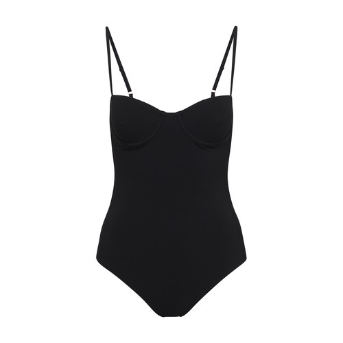 Performance fabric. Heart-shaped neckline. Thin shoulder straps.