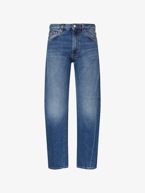 Straight-leg slim-fit non-stretch organic cotton denim jeans. Fading throughout.· Mid- to high-rise· Belt loops· Five-pocket styling· Button-fly· Cropped cuffs· Logo patch at back waist· Contrast stitching in tan.