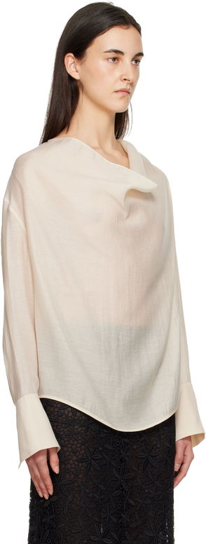 Totême woven blouse. Relaxed fit, cowl-neck, long sleeve, buttoned cuffs, curved hem. Lightweight, slight stretch.