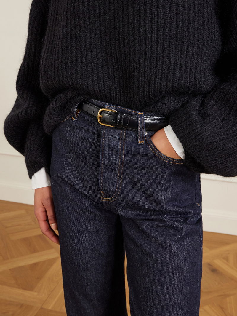 It's been made in Italy from glossy croc-effect leather and fastens with a rounded gold-tone buckle.
