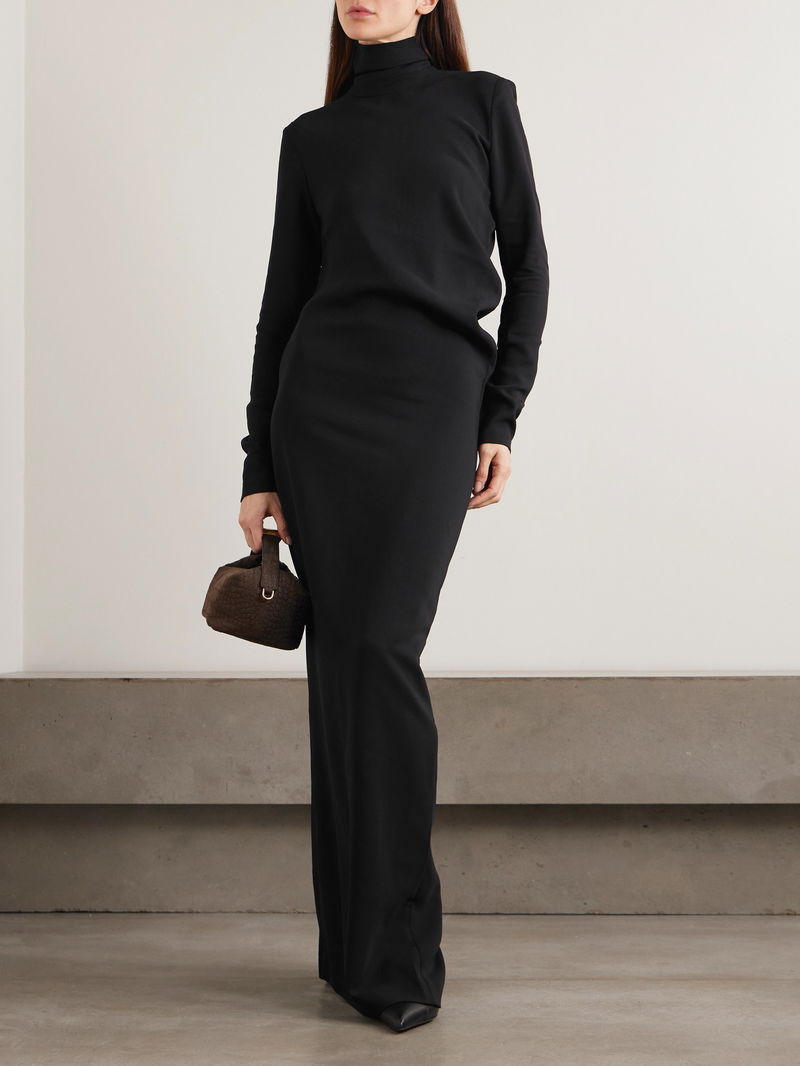 TOTEME's collections are defined by Scandinavian minimalism. A case in point, this dress is cut from jersey with a chic turtleneck and slightly loose fit. The draping on one side lends an elegant twist.