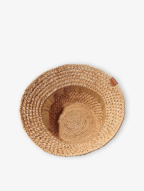 Totême's sharp focus on precise silhouettes is spotlighted by this sculptural style. Made from raffia, this sun hat has a woven, exaggerated construction with a silver-tone monogram plaque and a defined brim.
