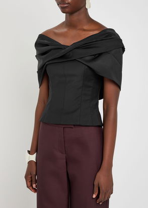 Cotton and wool-blend cady blouse.· Foldover neck· Flared hem· Zip closure at back· Full viscose satin lining.