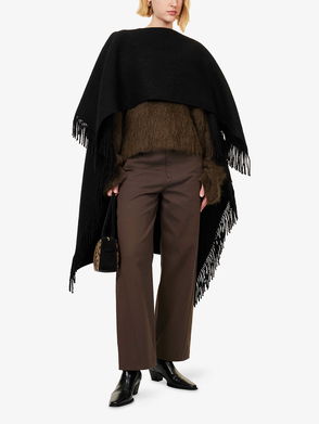 TOTEME's Fall '25 collection embraces the "cocooning instinct" of winter. Worn on the Fall '25 runway, this poncho is made from a warm wool-blend and has an enveloping shape with tactile fringed edges. Layer yours over knitwear and dresses.