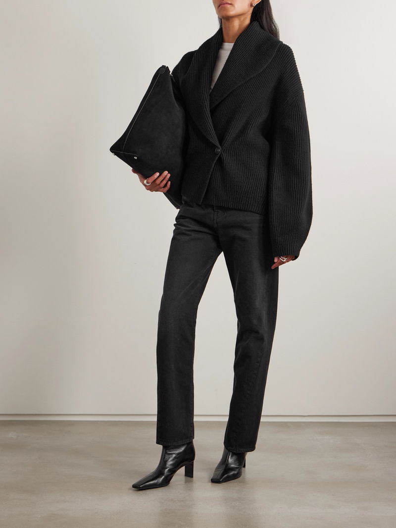 The wide shawl lapels of TOTEME's cardigan make it feel so elevated. It's rib-knitted from insulating wool for an oversized fit, so you can layer it over a tee or fine turtleneck.
