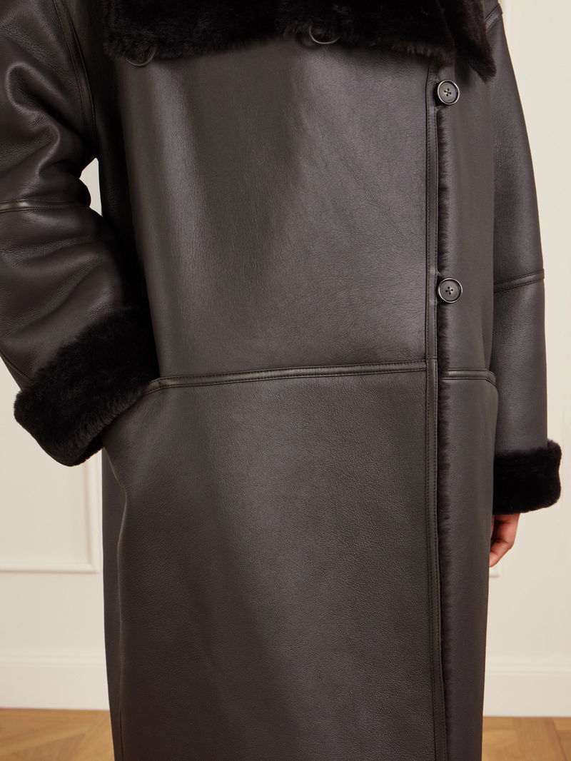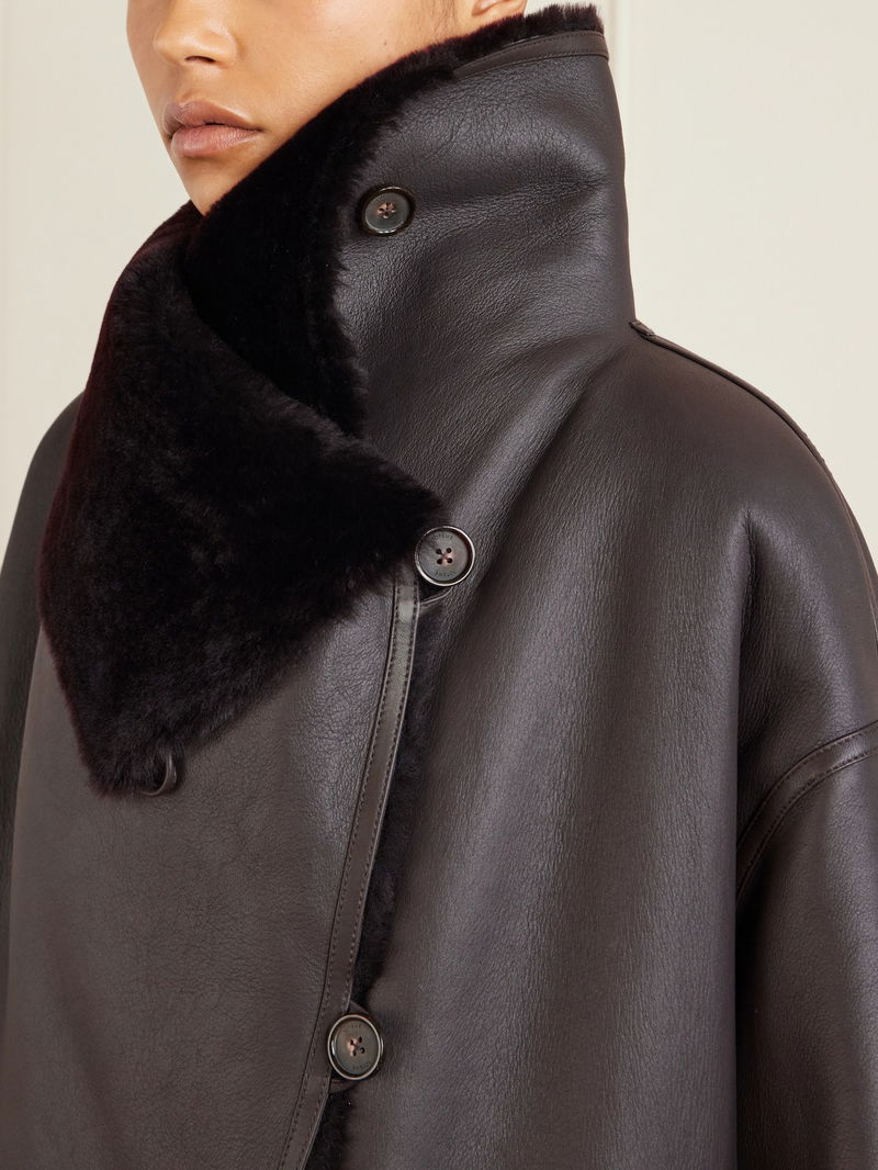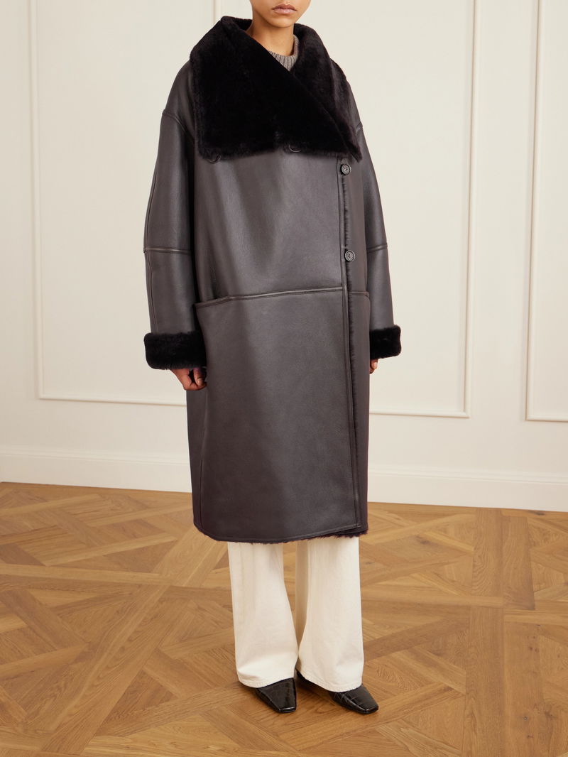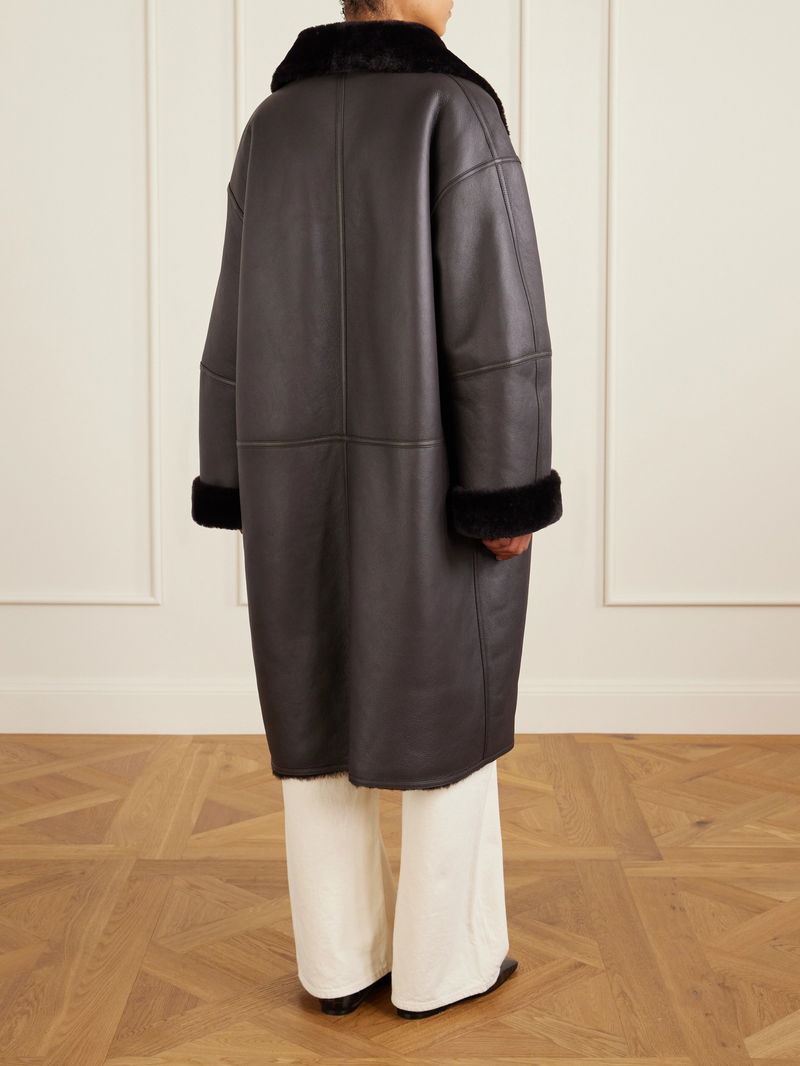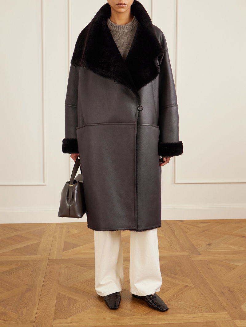 TOTEME's signature Scandinavian minimalism meets luxe warmth in this coat. It's made from shearling with a plush interior and has a relaxed shape that cocoons your figure. Layer yours over a turtleneck and pants for a polished, city-ready look.