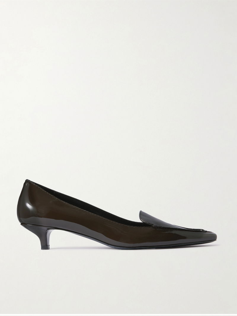 Description: Inspired by loafers, TOTEME's pumps are made from glossy patent-leather and have notched vamps. The 35mm heels offer comfortable lift.
