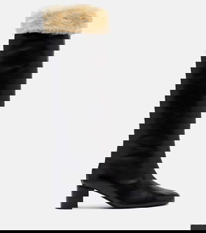 Knee-high LWG-certified suede boots in black. · Pointed toe· Zip closure at inner side· Grained leather lining· Covered wedge heel with rubber injection· Leather sole.