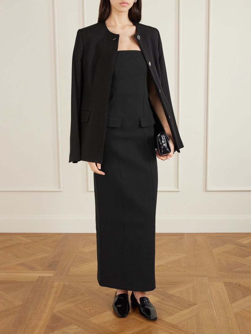 TOTEME's dress riffs on traditional notions of tailoring in a modern, feminine way. It's made from crepe and is designed for a figure-skimming, strapless fit with flap pockets on the hips. Keep styling simple with tonal heels and a clutch.