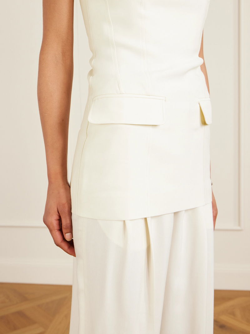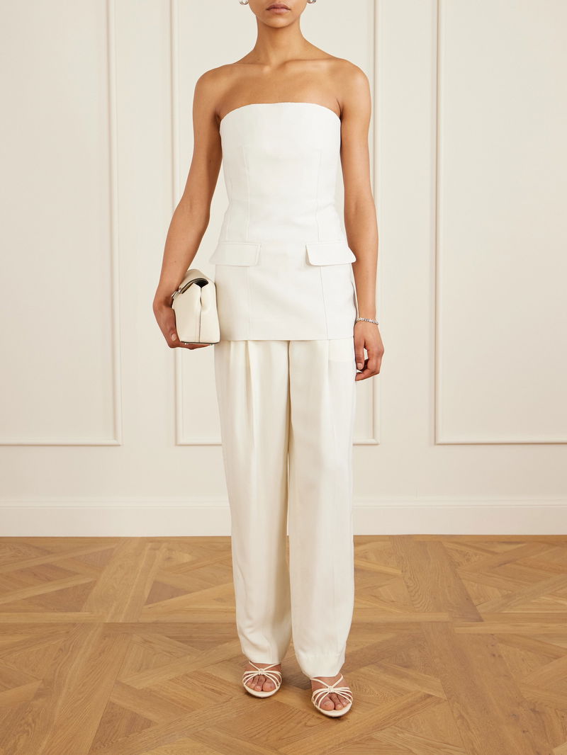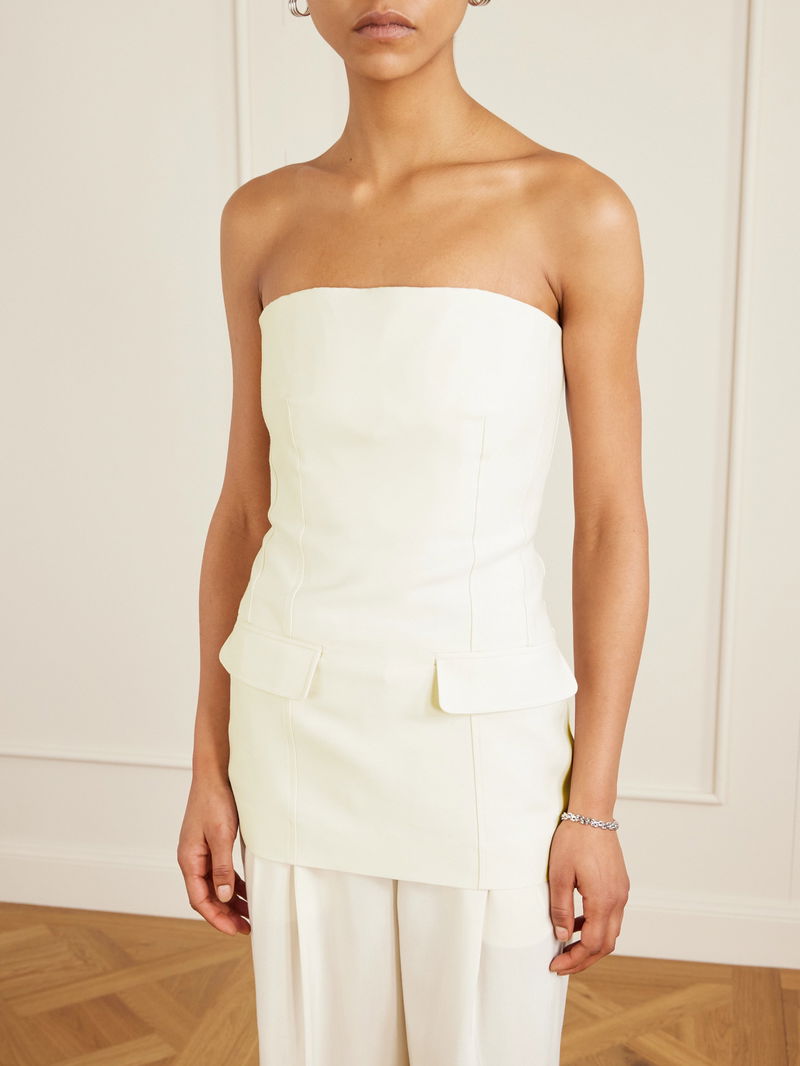 An elegant pared-back essential, TOTEME's top is tailored from wool and silk-blend crepe in a versatile ecru shade. Its clean, strapless silhouette is balanced by flap pockets and has a concealed zip along the back for a seamless finish. Wear yours with tonal pants for a chic take on suiting.
