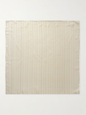 The classic square shape of TOTEME’s cream scarf means you can style it in many ways – fold it in half and secure it around your head or drape it around your neck. It’s made from silk crepe de chine that’s printed with the label’s signature monogram and black stripes.