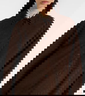 Define your dress code with styles from Toteme, a Stockholm-based brand dedicated to creating a modern uniform. Make a statement with this chic overshirt, cut from vibrant red suede.