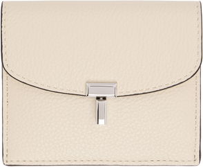 LWG-certified palmellato leather wallet in beige.· Concealed gold-tone logo stamp at face· Turn-lock flap· Six card slots at two-compartment interior · Silver-tone hardware.