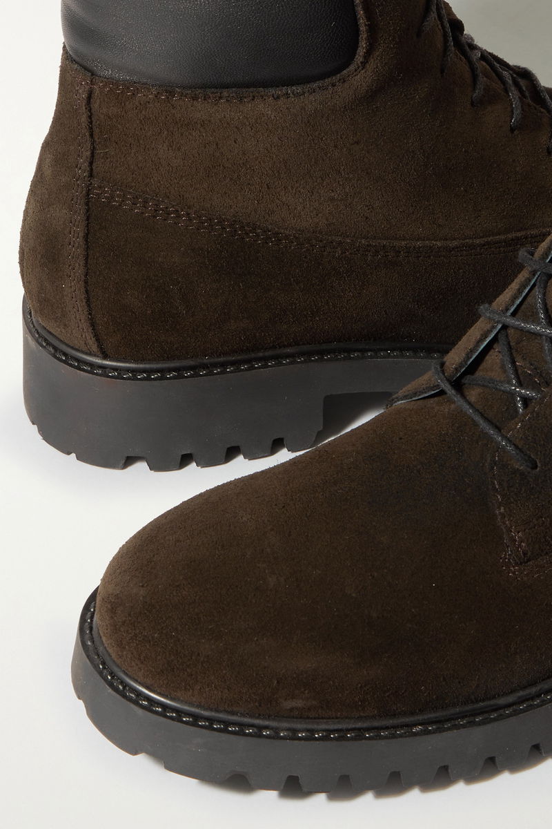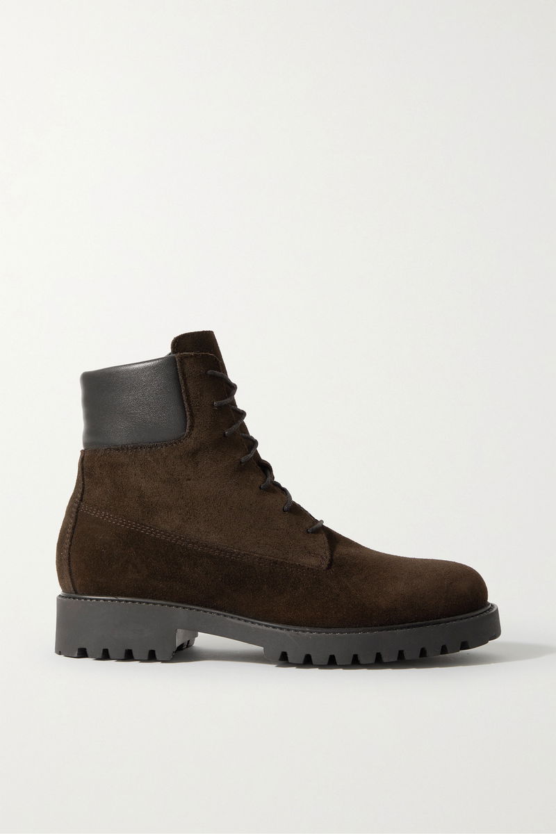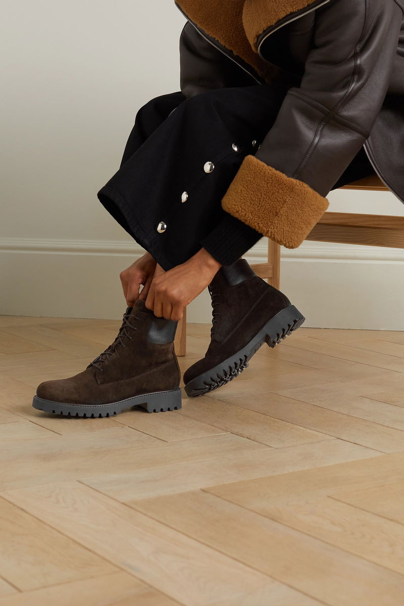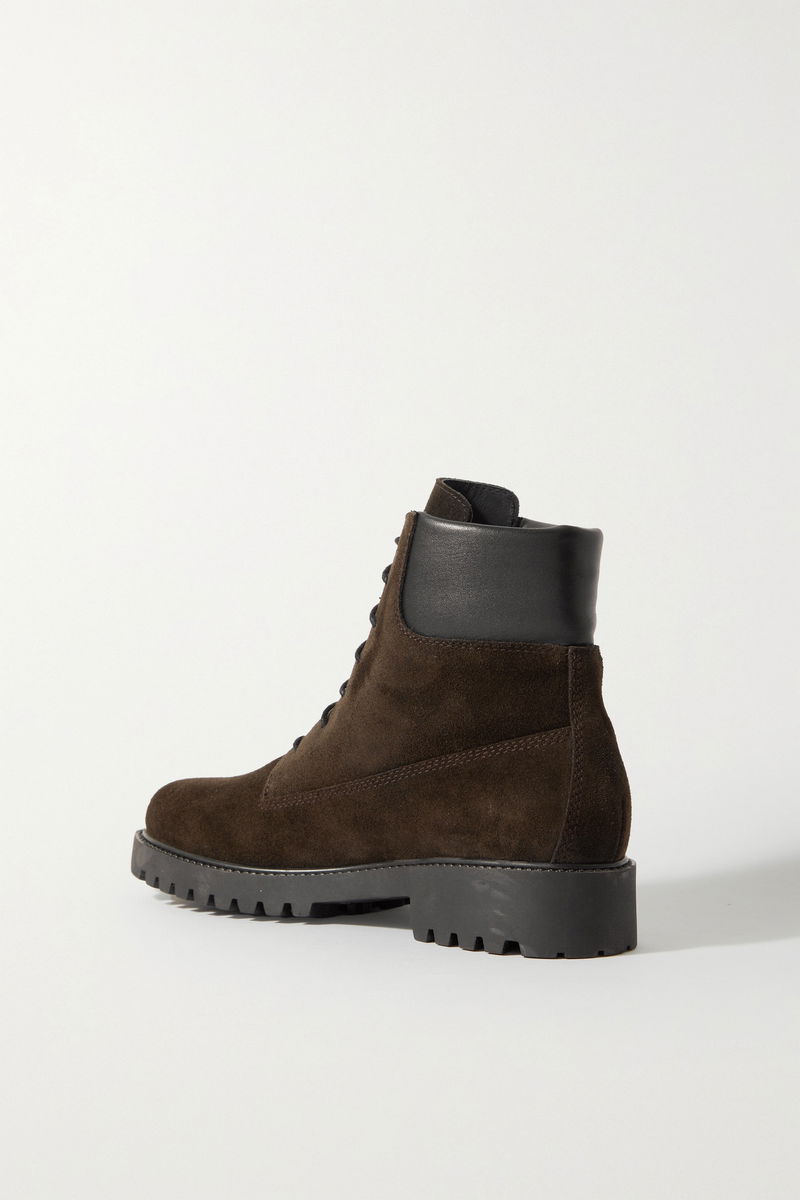 Every wardrobe needs a versatile pair of ankle boots like TOTEME's 'The Husky' style. Made from suede in a deep chocolate, this combat pair is trimmed with black leather and has waxed cotton laces.