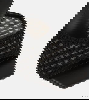 Sheepskin suede slip-on heeled sandals in black.· Open square toe· Rolled straps at vamp· Logo stamp at padded sheepskin footbed· Covered kitten heel with rubber injection· Leather sole.