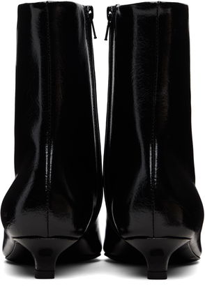 Ankle-high patent leather boots in black. · Pointed toe· Zip closure at inner side· Grained lambskin lining· Covered kitten heel with rubber injection· Leather sole with rubber injection.