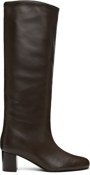 Knee-high grained calfskin boots in brown.· Pointed toe· Zip closure at inner side· Grained leather lining· Kitten heel with rubber injection· Buffed leather sole with rubber injection
