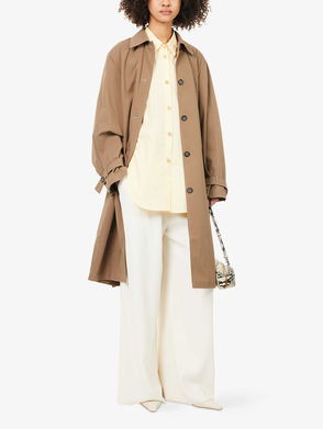 Organic cotton- and silk-blend twill trench coat.· Spread collar· Button closure· Belt loops and detachable pin-buckle belt· Welt pockets· Central vent at back hem· Unline.