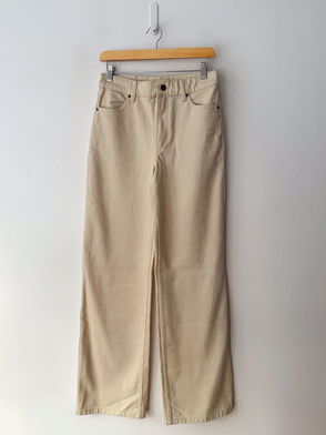Non-stretch organic cotton denim jeans. · High-rise· Belt loops· Five-pocket styling· Zip-fly· Creased legs· Logo patch at back waist.