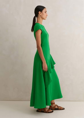 This 'Babette' maxi dress speaks to Tove's eye for refined minimalism. Cut from ochre crepe, it skims the figure with an artfully draped front and has a back slit for easy movement. Style yours with kitten heels and sculptural jewelry.
