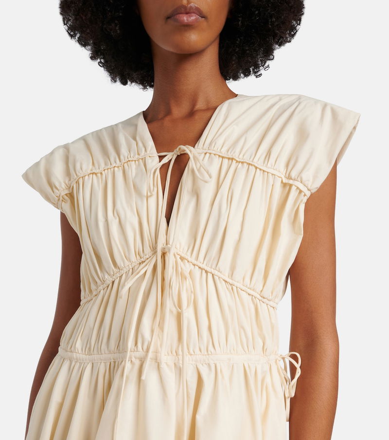 The Ceres dress from Tove is crafted from cotton to a flared, midi-length silhouette. This design is defined by gathered detailing on the bodice and secured by self-tie straps on the front and at the waist.