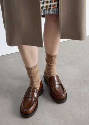 TOVE designs with longevity in mind, so everything has a timeless quality. These ‘Cora’ loafers are made from smooth chocolate leather with raised aprons and almond toes. Wear them with tailoring, jeans and midi skirts alike.