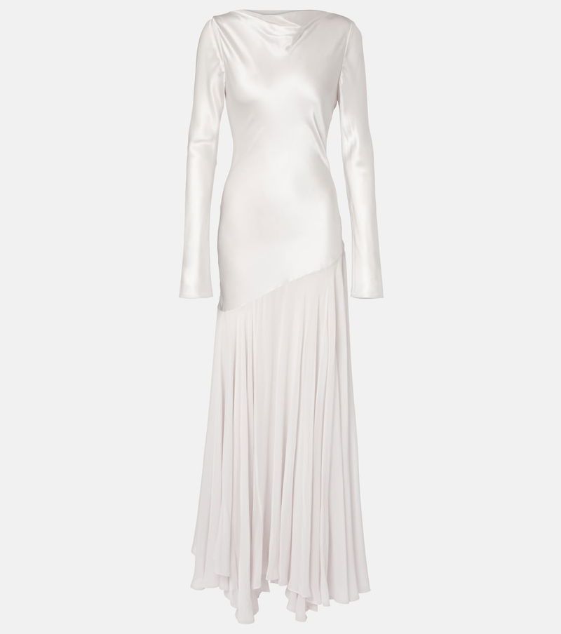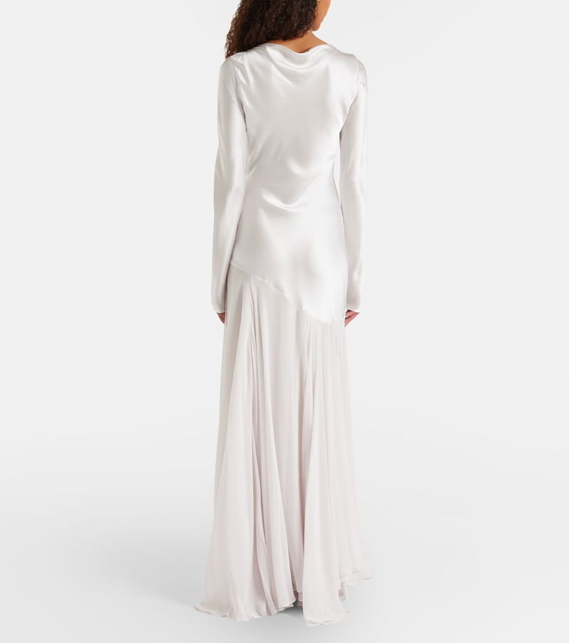 Choose Tove's Cordelia maxi dress for your next soirée. Entirely crafted from silk, the style features a satin bodice that hugs the hips in an asymmetric swoop, and a soft skirt of cascading chiffon.