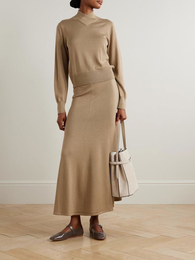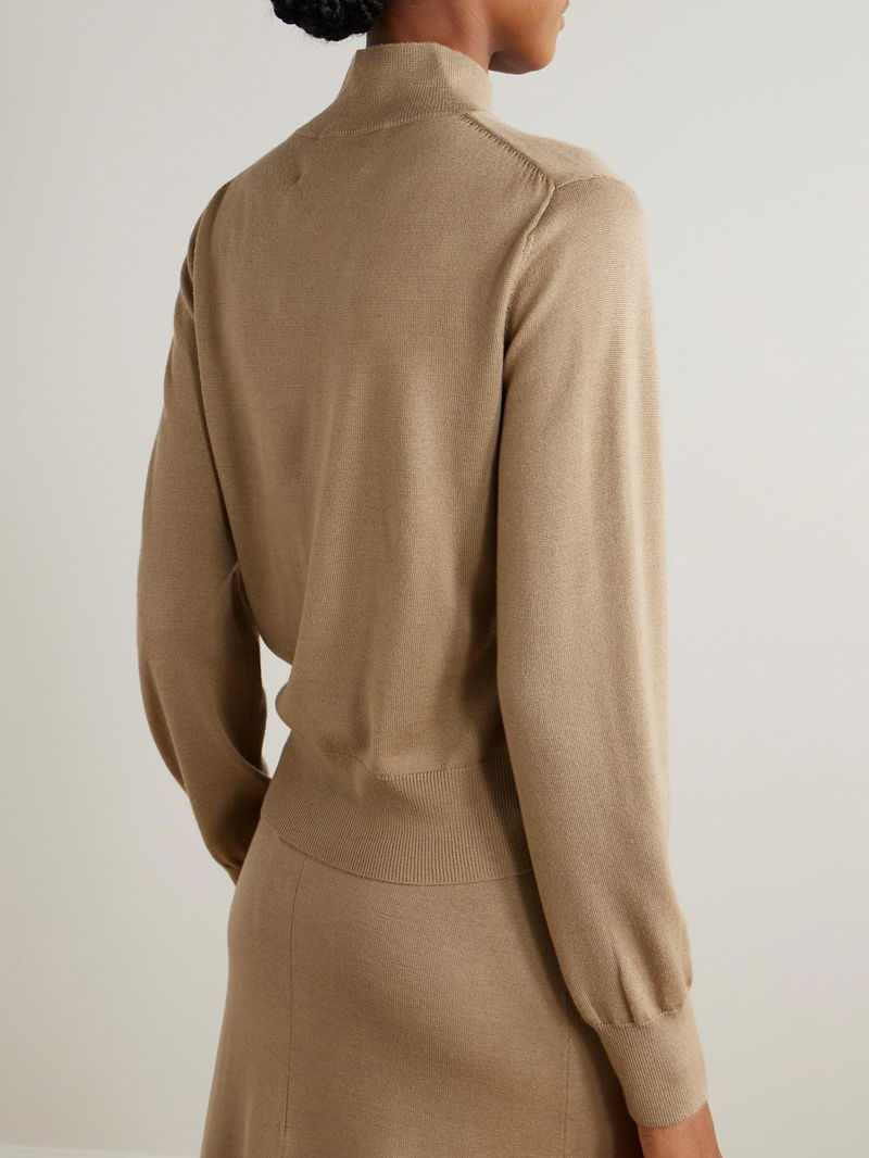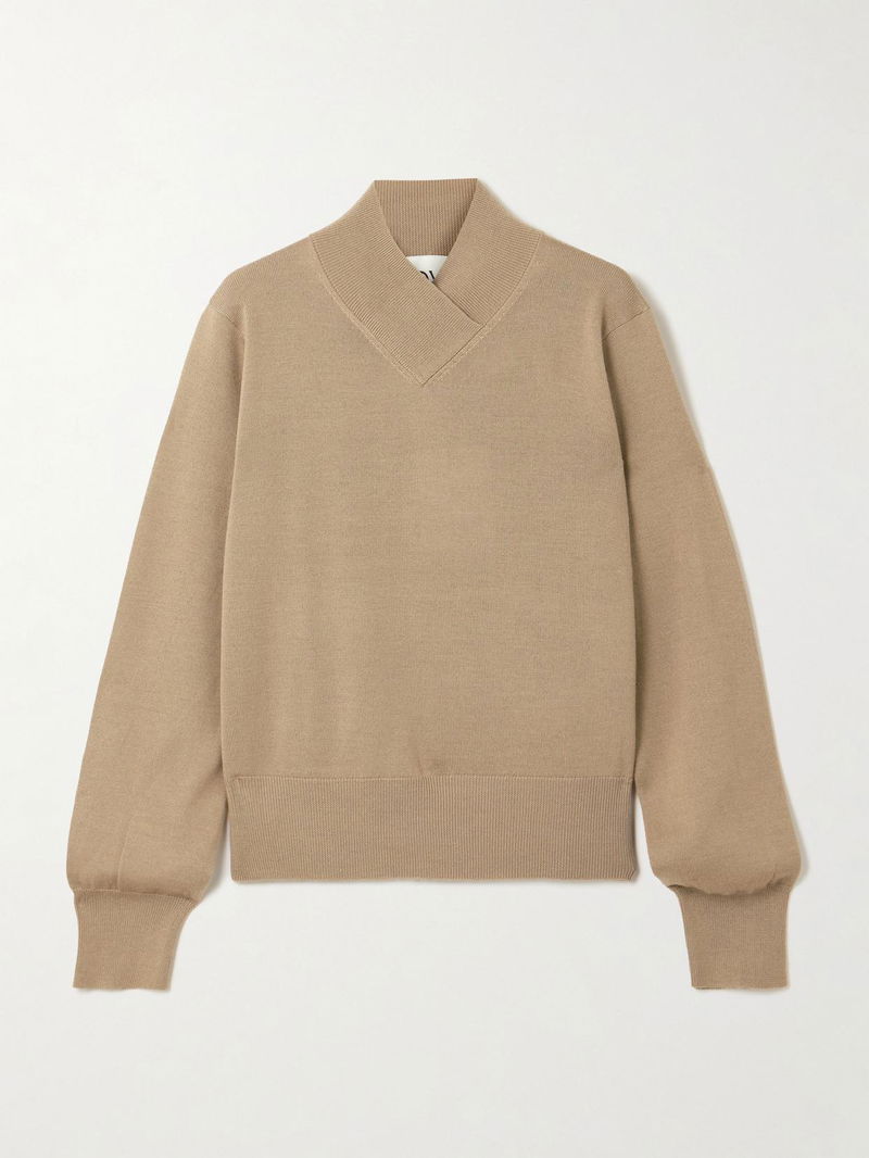 TOVE's 'Detta' sweater is knitted from soft merino wool blended with silk for a smoother handle. Intended for a relaxed fit, it's framed by neat, ribbed trims, including an elegant crossover V-neckline. The 'Putty' color will work with your existing wardrobe without too much thought.