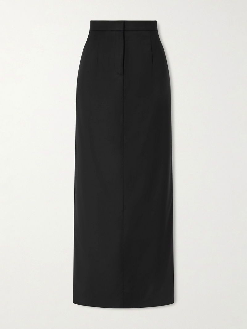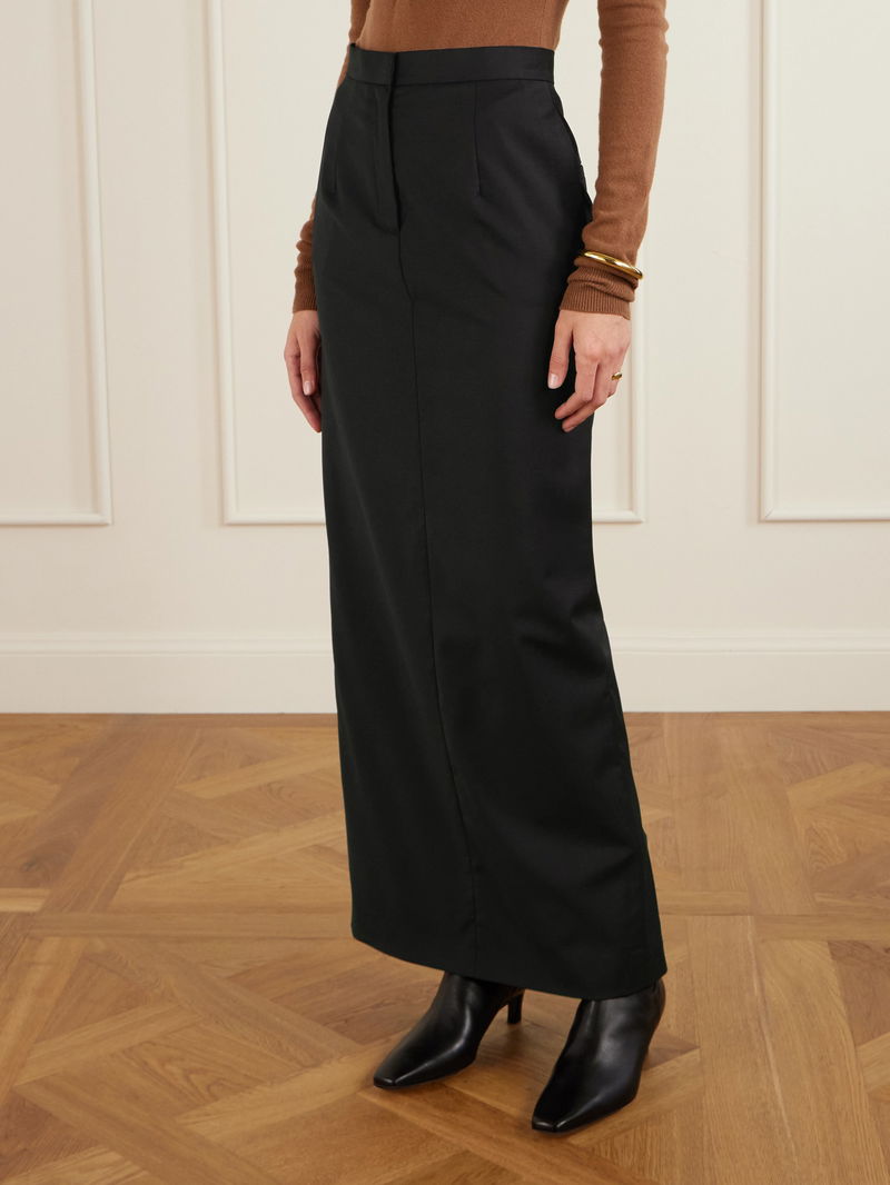 TOVE’s ‘Fey’ skirt is defined by clean lines and understated elegance. Cut from a wool-blend in a sleek column silhouette, it sits high on the waist and skims the body with elongated, tailored proportions.