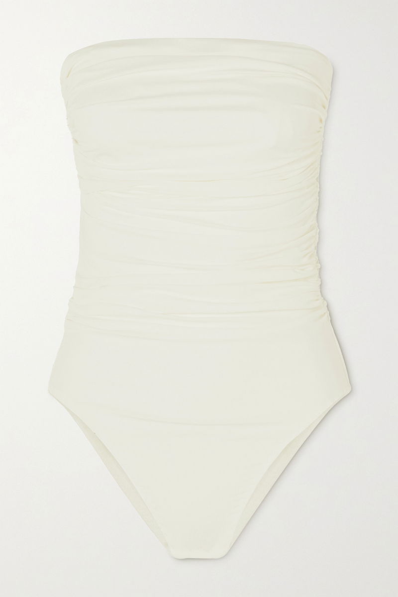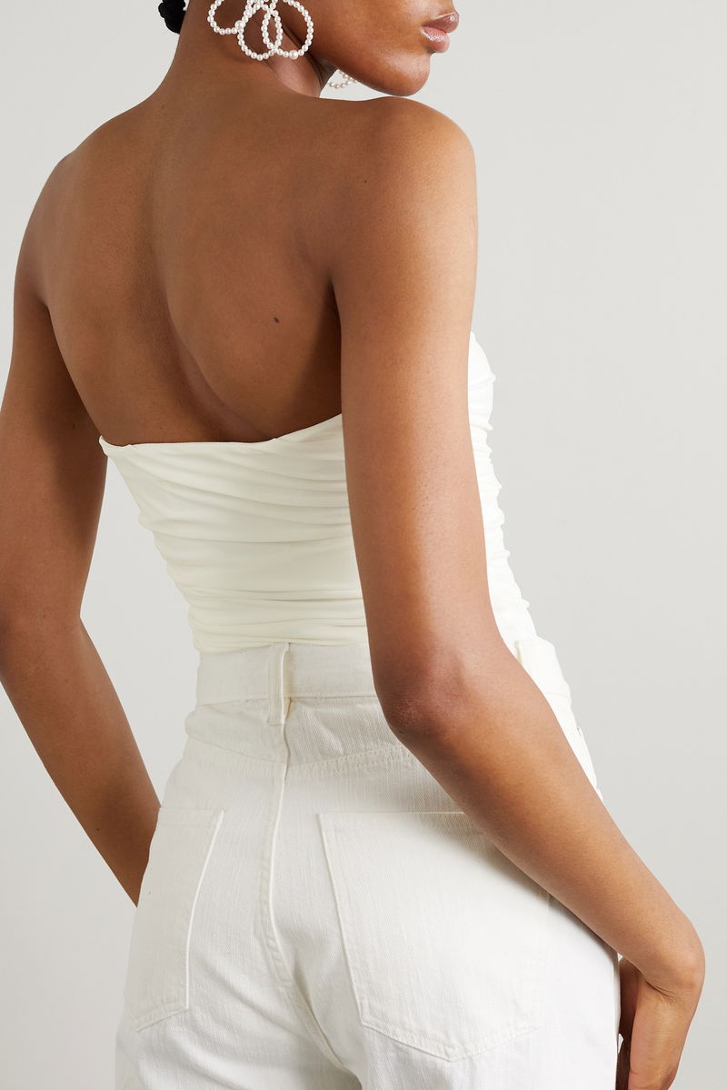 Fran Strapless Ruched Stretch-Crepe Bodysuit