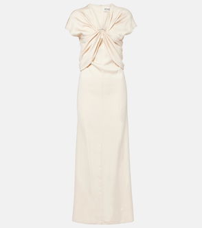 TOVE's soft yet sculptural 'Liv' dress made its first appearance on the Spring '24 runway. Cut from crepe-jersey in a one-shoulder silhouette, it's ruched through the bodice and falls to a bubble hem. Style yours with statement earrings.