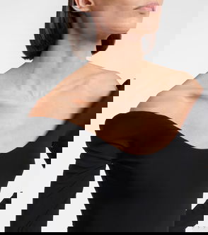 Bodysuit, Stretch-jersey, Draped, Twisted, Ruched, Snap fastenings at base, Stretchy fabric.