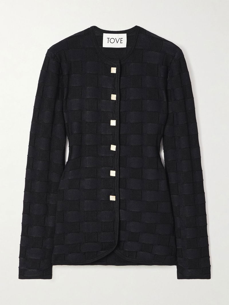 Few brands do chic simplicity quite like TOVE. This 'Uma' cardigan is jacquard-knitted with subtle checks and has a round neckline and subtle flare over the hips.