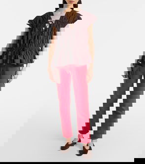 Viscose crepe top. Pleated throughout. · Paneled construction · Straight neck · Boning at bodice · Gathering at bubble hem · Zip closure at low back · Fully lined.