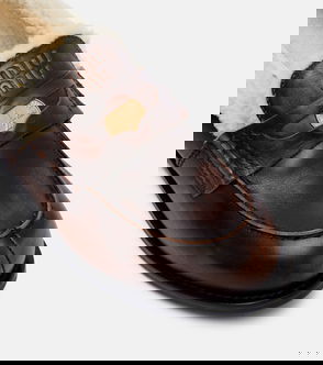 Inspired by the dressed-down elegance of California lifestyle, this shoe takes you from indoors to outdoors with ease. The Lane blends the label's soft slippers with a slip-on loafer silhouette and features shorter-length sheepskin for any weather. Now updated in metallic snake-embossed leather.