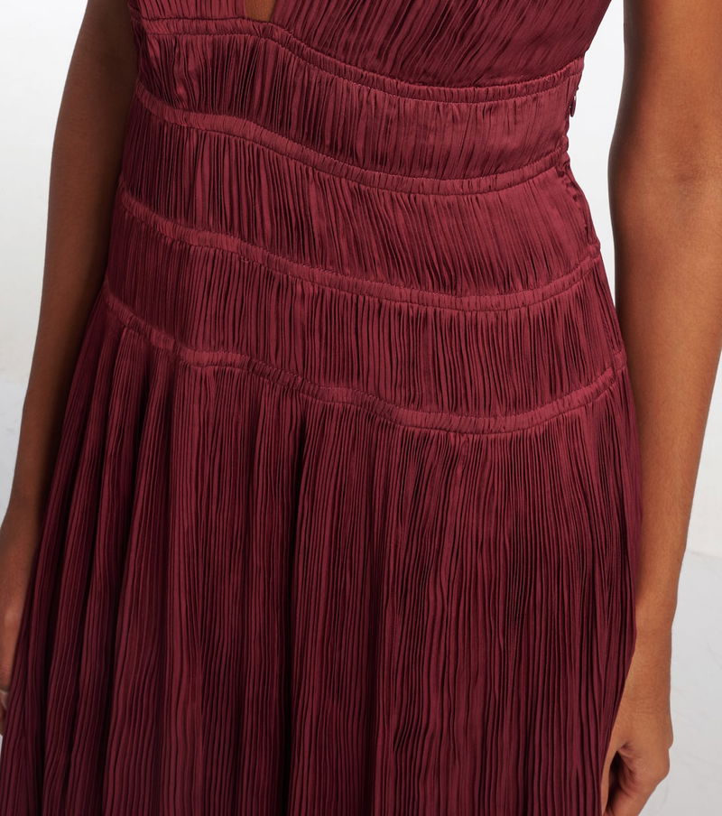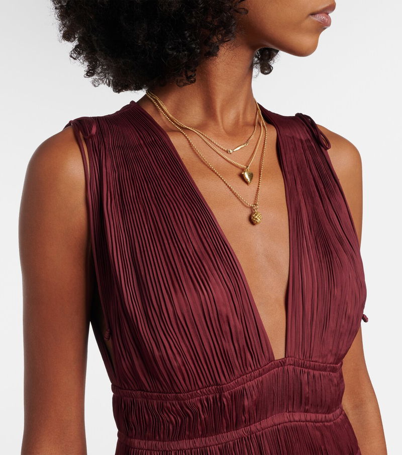 Ulla Johnson creates wanderlust-inspiring pieces full of worldly flair. Crafted from satin plissé for an elegant, fluid drape, the Tasneem gown features a shirred, cinching waist and plunging V-neckline.
