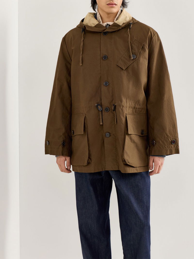 The Boston Parka by Universal Works reflects the brand’s utilitarian aesthetic through a practical yet refined silhouette. Designed in rich brown tones, it offers a relaxed fit with a focus on everyday wearability. Ideal for cooler conditions and layered looks. A dependable outer layer that blends function with timeless style.