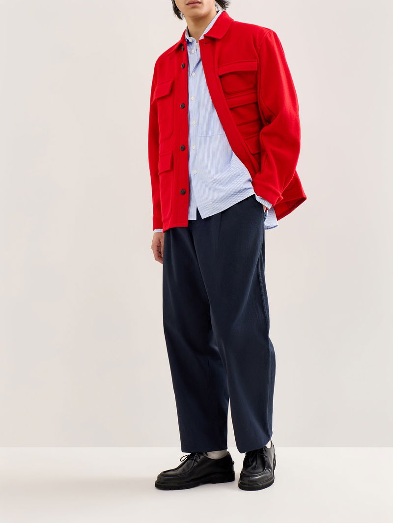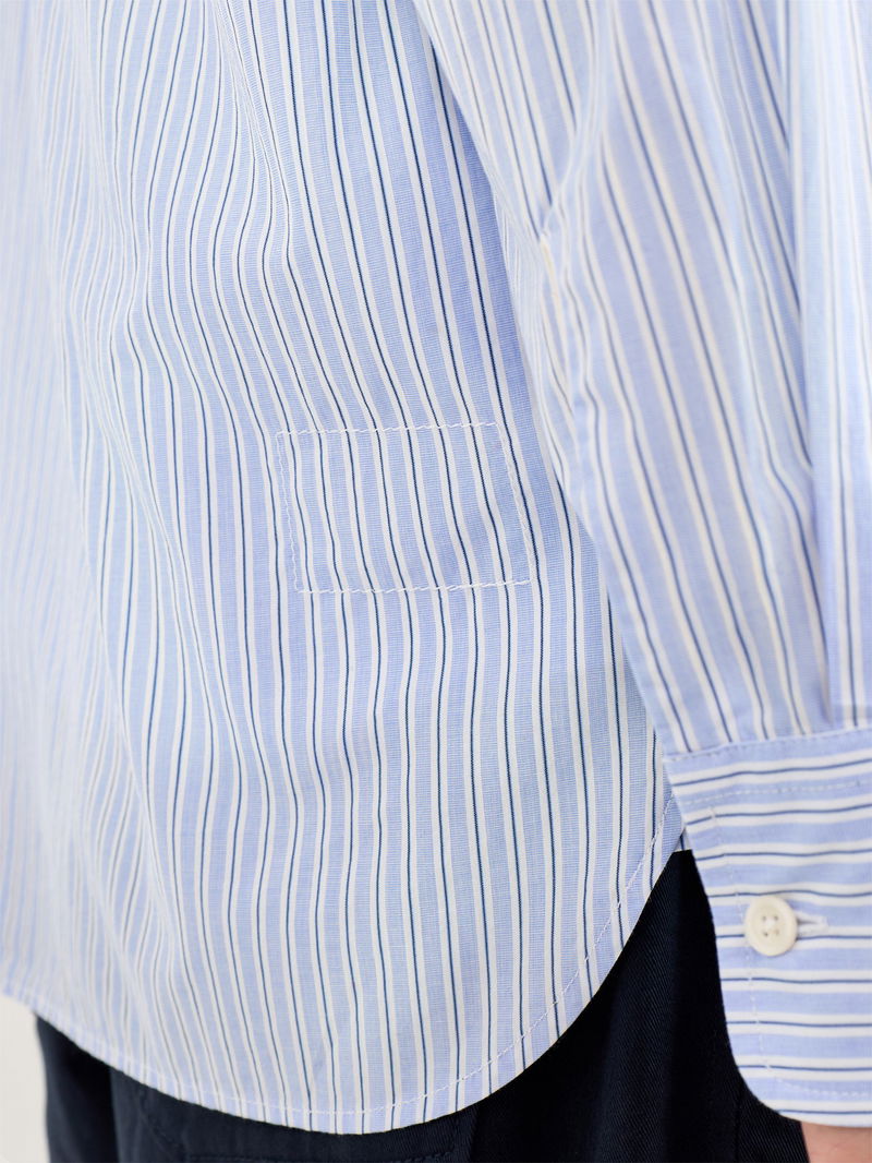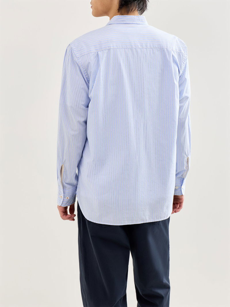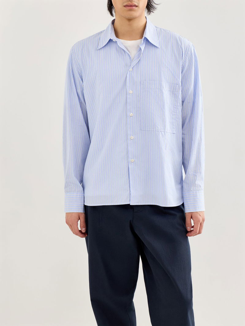 The Square Pocket Shirt by Universal Works brings functional detailing to a classic shirt silhouette. Crafted in blue with a relaxed fit, it offers versatility for everyday wear. Designed to be styled alone or layered. A refined shirt that blends practicality with contemporary appeal.